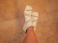 They are Smartwool PhD Running Socks. At $12.49, they may very well be the most expensive pair of socks I have ever bought. They say The Highest Degree of PERFORMANCE on them, so I figured I would try them out. I ran 6 miles with them today and they were great! I was worried that they would be hot since they are Smartwool, but they seemed fine.