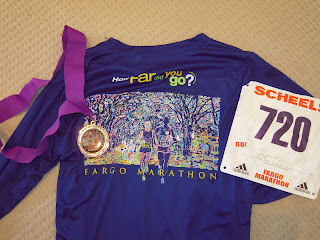 After eating whatever I wanted for dinner last night at Friday’s, dessert at Dairy Queen, and breakfast at McDonald’s today, I guess I have thoroughly celebrated my calorie burning day at the Fargo Marathon. I’m ready to tell you all about it!